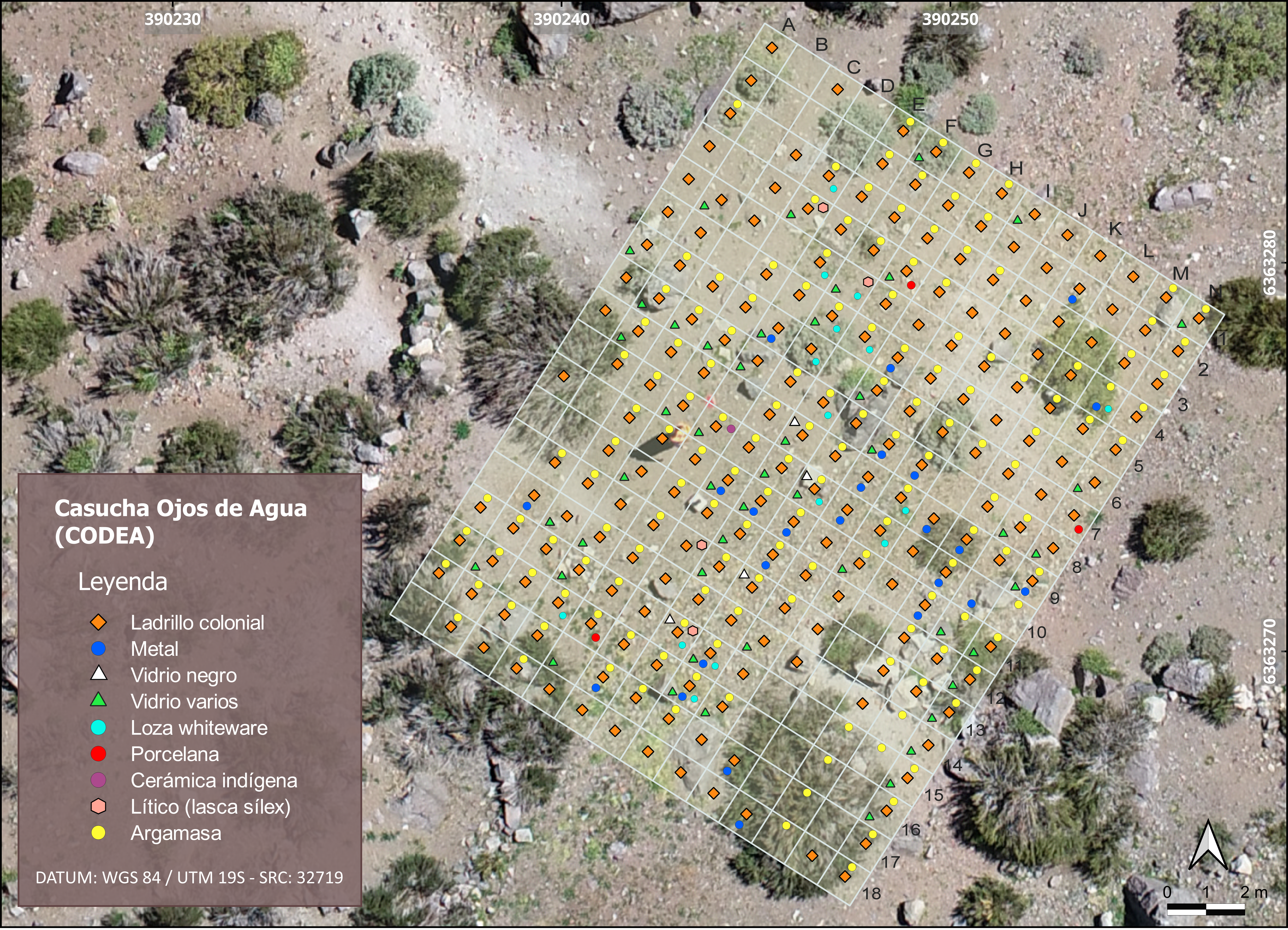 Se trata de la primera casucha, viniendo desde el lado chileno hacia el argentino o, la última en sentido inverso. Actualmente se encuentra en las inmediaciones del parador Difunta Correa y es la única de las 4 que no fue fotografiada durante el siglo XIX y XX. Existe una litografía que realizó Rugendas durante su cruce por la cordillera en 1820, si bien se trata de un dibujo simple, se alcanza a diferenciar dos estructuras. Esto se refuerza con la documentación histórica que confirma la presencia de dos recintos , uno servía para el descanso y, el segundo, para el resguardo de los animales. La evidencia material observada en superficie, dan cuenta de elementos constructivos típico de la colonia y elementos congruentes con el siglo XVIII, lo que hace suponer que esta casucha nunca fue reconstruida.